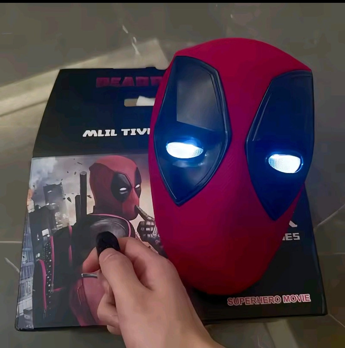 Máscara interactiva Deadpool. Con luz parpadea con control remoto.