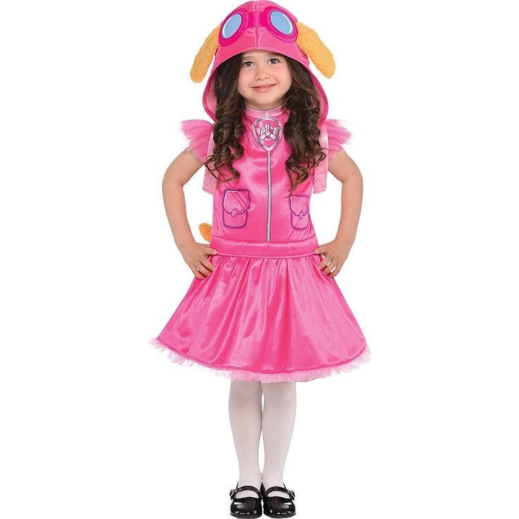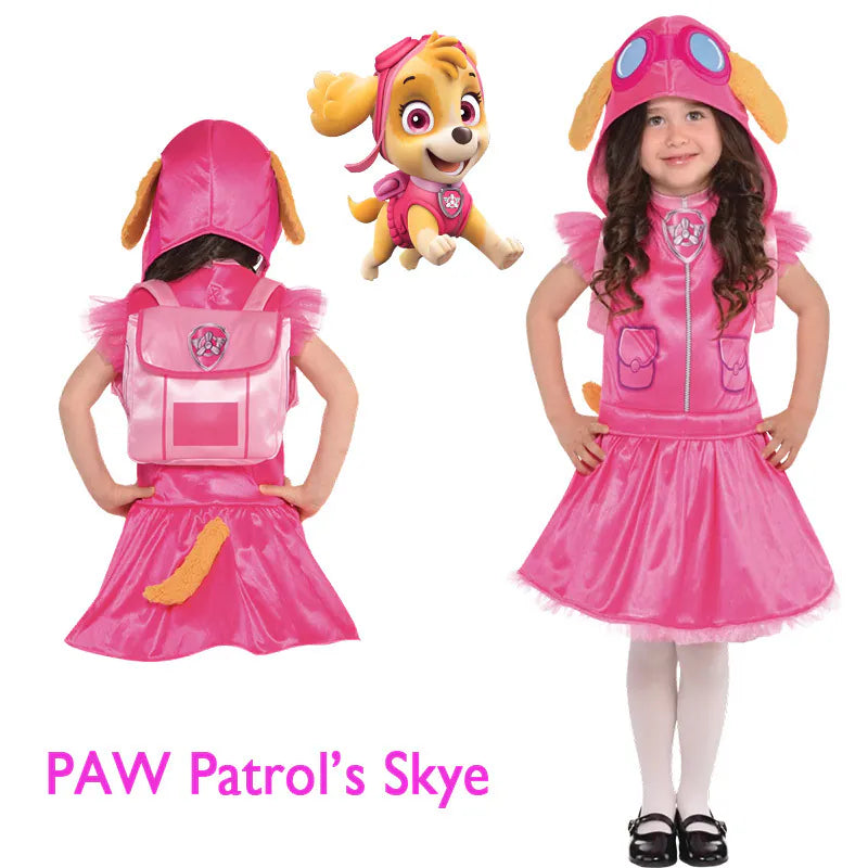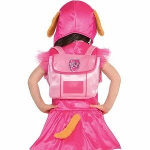 El conjunto incluye un vestido rosa con detalles de aviadora, una gorra a juego con orejas de cachorrita y una mochila de alas removibles. Perfecto para fiestas de cumpleaños, Halloween, juegos de rol y para que tu pequeña se sienta como una verdadera heroína lista para volar al rescate.