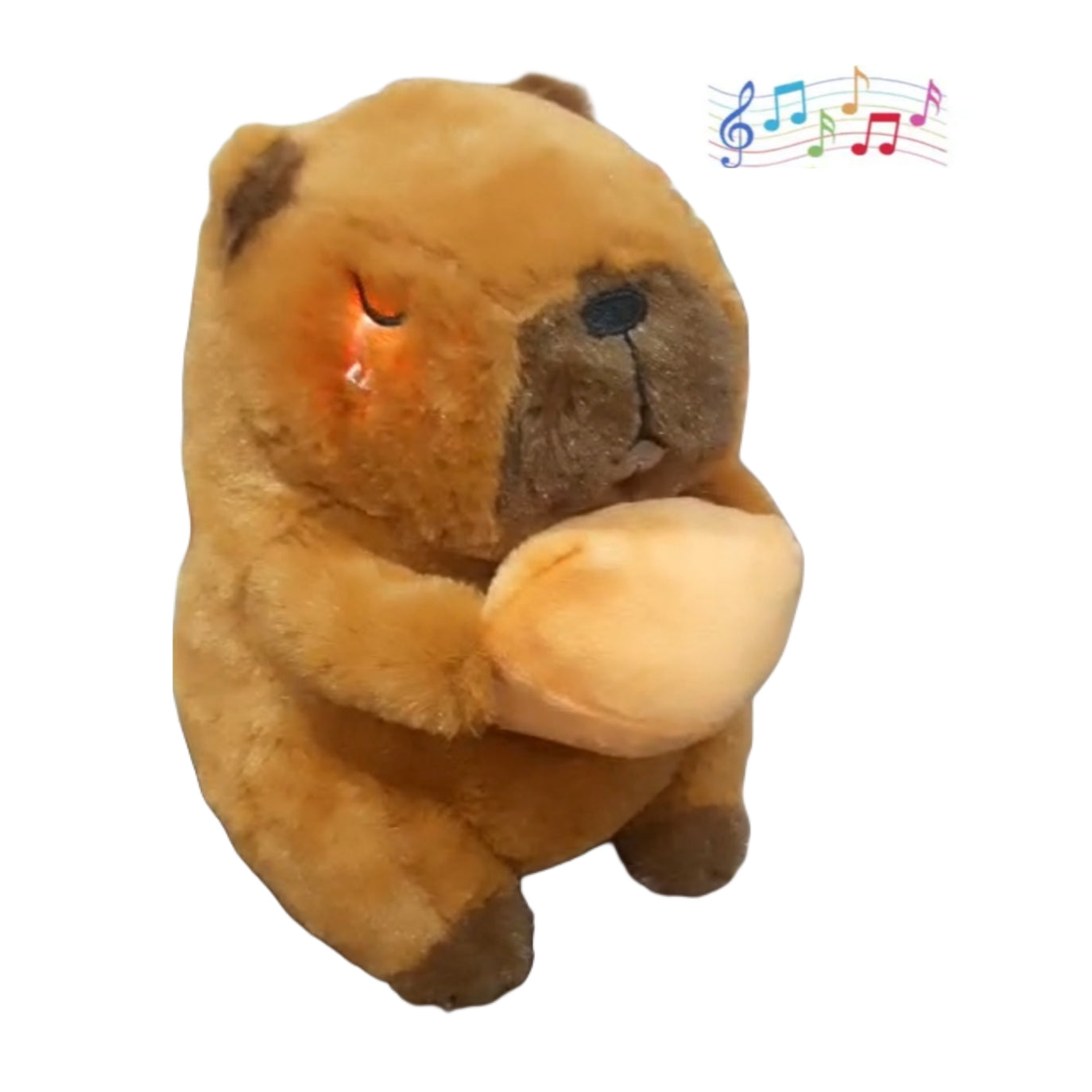 Descripción: ¡Descubre la magia de este capibara peluche de 25 cm que cuenta con luces y sonido al presionar su pancita! ✨ Perfecto para niños y adultos que buscan un compañero de peluche interactivo y divertido.
